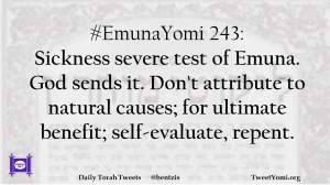 #EmunaYomi 243: Sickness severe test of Emuna. God sends it. Don’t attribute to natural causes; for ultimate benefit; self-evaluate, repent.