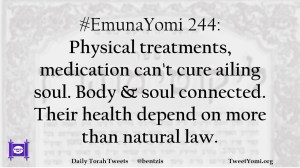 #EmunaYomi 244: Physical treatments, medication can’t cure ailing soul. Body & soul connected. Their health depend on more than natural law.