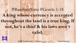 #RambamYomi #Gezela 5:18 A king whose currency is accepted throughout the land is a true king. If not, he’s a thief & his laws aren’t valid.