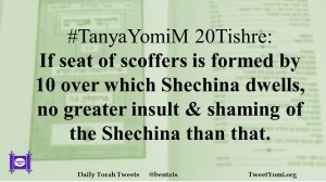 #TanyaYomiM 20Tishre: If seat of scoffers is formed by 10 over which Shechina dwells, no greater insult & shaming of the Shechina than that.