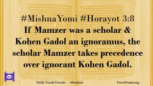 #MishnaYomi #Horayot 3:8 If Mamzer was a scholar & Kohen Gadol an ignoramus, the scholar Mamzer takes precedence over ignorant Kohen Gadol.
