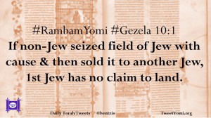 #RambamYomi #Gezela 10:1 If non-Jew seized field of Jew with cause & then sold it to another Jew, 1st Jew has no claim to land.