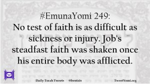 #EmunaYomi 249: No test of faith is as difficult as sickness or injury. Job’s steadfast faith was shaken once his entire body was afflicted.