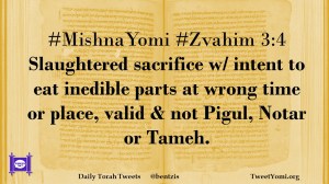 #MishnaYomi #Zvahim 3:4 Slaughtered sacrifice w/ intent to eat inedible parts at wrong time or place, valid & not Pigul, Notar or Tameh.