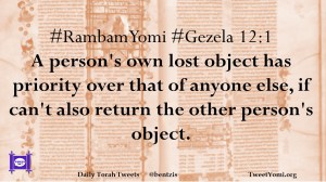 #RambamYomi #Gezela 12:1 A person’s own lost object has priority over that of anyone else, if can’t also return the other person’s object.
