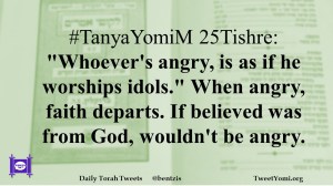 #TanyaYomiM 25Tishre: “Whoever’s angry, is as if he worships idols.” When angry, faith departs. If believed was from God, wouldn’t be angry.