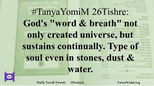 #TanyaYomiM 26Tishre: God’s “word & breath” not only created universe, but sustains continually. Type of soul even in stones, dust & water.