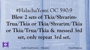 #HalachaYomi OC 590:9 Blew 2 sets of Tkia/Shvarim-Trua/Tkia or Tkia/Shvarim/Tkia or Tkia/Trua/Tkia & messed 3rd set, only repeat 3rd set.