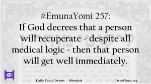 #EmunaYomi 257: If God decrees that a person will recuperate – despite all medical logic – then that person will get well immediately.