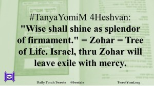 #TanyaYomiM 4Heshvan: “Wise shall shine as splendor of firmament.” = Zohar = Tree of Life. Israel, thru Zohar will leave exile with mercy.