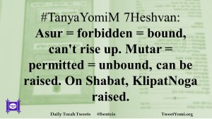 #TanyaYomiM 7Heshvan: Asur = forbidden = bound, can’t rise up. Mutar = permitted = unbound, can be raised. On Shabat, KlipatNoga raised.