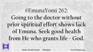 #EmunaYomi 262: Going to the doctor without prior spiritual effort shows lack of Emuna. Seek good health from He who grants life – God.
