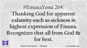 #EmunaYomi 264: Thanking God for apparent calamity such as sickness is highest expression of Emuna. Recognizes that all from God & for best.