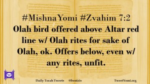 #MishnaYomi #Zvahim 7:2 Olah bird offered above Altar red line w/ Olah rites for sake of Olah, ok. Offers below, even w/ any rites, unfit.