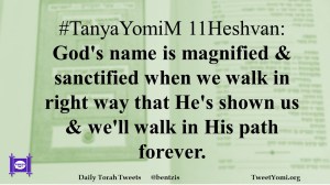 #TanyaYomiM 11Heshvan: God’s name is magnified & sanctified when we walk in right way that He’s shown us & we’ll walk in His path forever.
