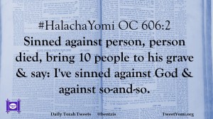 #HalachaYomi OC 606:2 Sinned against person, person died, bring 10 people to his grave & say: I’ve sinned against God & against so-and-so.