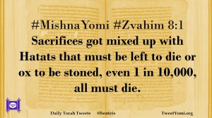 #MishnaYomi #Zvahim 8:1 Sacrifices got mixed up with Hatats that must be left to die or ox to be stoned, even 1 in 10,000, all must die.