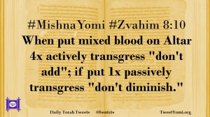 #MishnaYomi #Zvahim 8:10 When put mixed blood on Altar 4x actively transgress “don’t add”; if put 1x passively transgress “don’t diminish.”