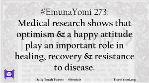 #EmunaYomi 273: Medical research shows that optimism & a happy attitude play an important role in healing, recovery & resistance to disease.