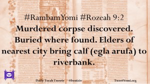 #RambamYomi #Rozeah 9:2 Murdered corpse discovered. Buried where found. Elders of nearest city bring calf (egla arufa) to riverbank.