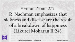#EmunaYomi 275: R’ Nachman emphasizes that sickness and disease are the result of a breakdown of happiness (Likutei Moharan II:24).