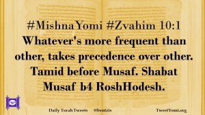 #MishnaYomi #Zvahim 10:1 Whatever’s more frequent than other, takes precedence over other. Tamid before Musaf. Shabat Musaf b4 RoshHodesh.