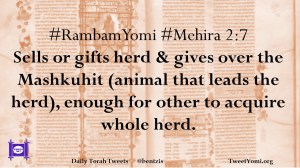 #RambamYomi #Mehira 2:7 Sells or gifts herd & gives over the Mashkuhit (animal that leads the herd), enough for other to acquire whole herd.