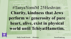 #TanyaYomiM 25Heshvan: Charity, kindness that Jews perform w/ generosity of pure heart, alive, exist in physical world until TchiyatHametim.