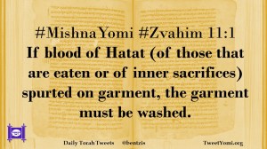 #MishnaYomi #Zvahim 11:1 If blood of Hatat (of those that are eaten or of inner sacrifices) spurted on garment, the garment must be washed.