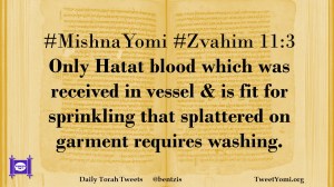 #MishnaYomi #Zvahim 11:3 Only Hatat blood which was received in vessel & is fit for sprinkling that splattered on garment requires washing.