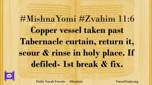 #MishnaYomi #Zvahim 11:6 Copper vessel taken past Tabernacle curtain, return it, scour & rinse in holy place. If defiled- 1st break & fix.