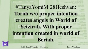 #TanyaYomiM 28Heshvan: Torah w/o proper intention creates angels in World of Yetzirah. With proper intention created in world of Beriah.