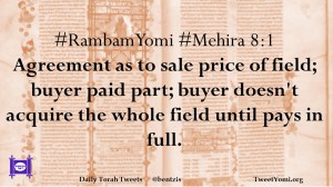 #RambamYomi #Mehira 8:1 Agreement as to sale price of field; buyer paid part; buyer doesn’t acquire the whole field until pays in full.