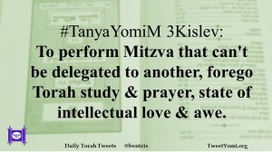 #TanyaYomiM 3Kislev: To perform Mitzva that can’t be delegated to another, forego Torah study & prayer, state of intellectual love & awe.