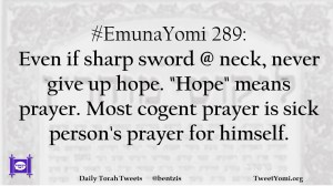 #EmunaYomi 289: Even if sharp sword @ neck, never give up hope. “Hope” means prayer. Most cogent prayer is sick person’s prayer for himself.
