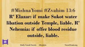 #MishnaYomi #Zvahim 13:6 R’ Elazar: if make Sukot water libation outside Temple, liable. R’ Nehemia: if offer blood residue outside, liable.