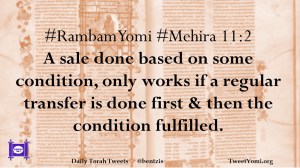 #RambamYomi #Mehira 11:2 A sale done based on some condition, only works if a regular transfer is done first & then the condition fulfilled.