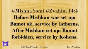 #MishnaYomi #Zvahim 14:4 Before Mishkan was set up: Bamot ok, service by 1stborns. After Mishkan set up: Bamot forbidden, service by Kohens.