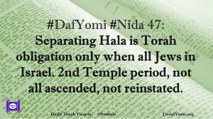 DafYomi, Nida #DafYomi #Nida 47 Date: December 9, 2019Author: ysspitz #DafYomi #Nida 47: Separating Hala is Torah obligation only when all Jews in Israel. 2nd Temple period, not all ascended, not reinstated. Share this: Share on X (Opens in new window) X Share on Facebook (Opens in new window) Facebook Like Loading... Related