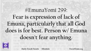 #EmunaYomi 299: Fear is expression of lack of Emuna, particularly that all God does is for best. Person w/ Emuna doesn’t fear anything.