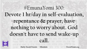 #EmunaYomi 300: Devote 1 hr/day in self-evaluation, repentance & prayer, have nothing to worry about. God doesn’t have to send wake-up call.