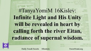 #TanyaYomiM 16Kislev: Infinite Light and His Unity will be revealed in heart by calling forth the river Eitan, radiance of supernal wisdom.