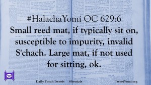 #HalachaYomi OC 629:6 Small reed mat, if typically sit on, susceptible to impurity, invalid S’chach. Large mat, if not used for sitting, ok.
