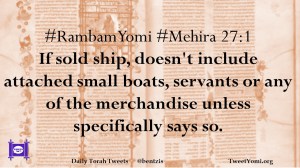 #RambamYomi #Mehira 27:1 If sold ship, doesn’t include attached small boats, servants or any of the merchandise unless specifically says so.