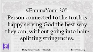 #EmunaYomi 305: Person connected to the truth is happy serving God the best way they can, without going into hair-splitting stringencies.