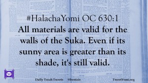 #HalachaYomi OC 630:1 All materials are valid for the walls of the Suka. Even if its sunny area is greater than its shade, it’s still valid.