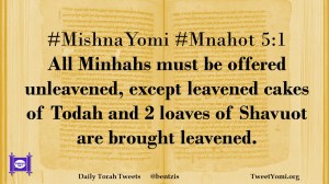 #MishnaYomi #Mnahot 5:1 All Minhahs must be offered unleavened, except leavened cakes of Todah and 2 loaves of Shavuot are brought leavened.