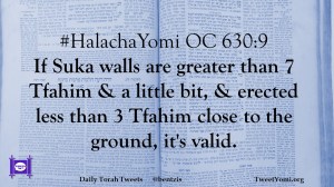 #HalachaYomi OC 630:9 If Suka walls are greater than 7 Tfahim & a little bit, & erected less than 3 Tfahim close to the ground, it’s valid.
