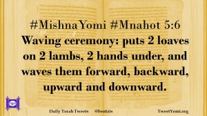 #MishnaYomi #Mnahot 5:6 Waving ceremony: puts 2 loaves on 2 lambs, 2 hands under, and waves them forward, backward, upward and downward.