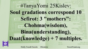 #TanyaYomi 25Kislev: Soul gradations correspond 10 Sefirot: 3 “mothers”: Chohma(wisdom), Bina(understanding), Daat(knowledge) + 7 multiples.